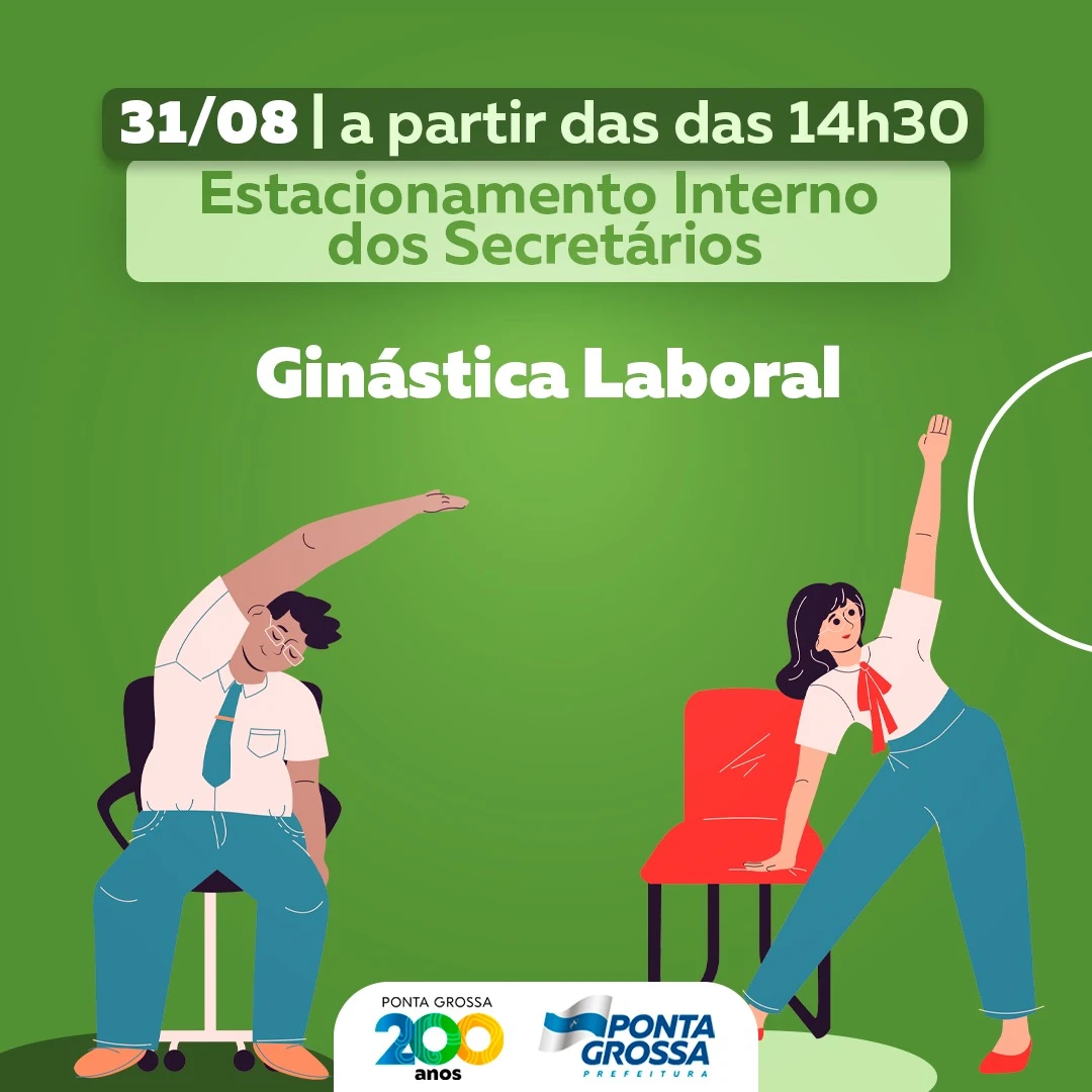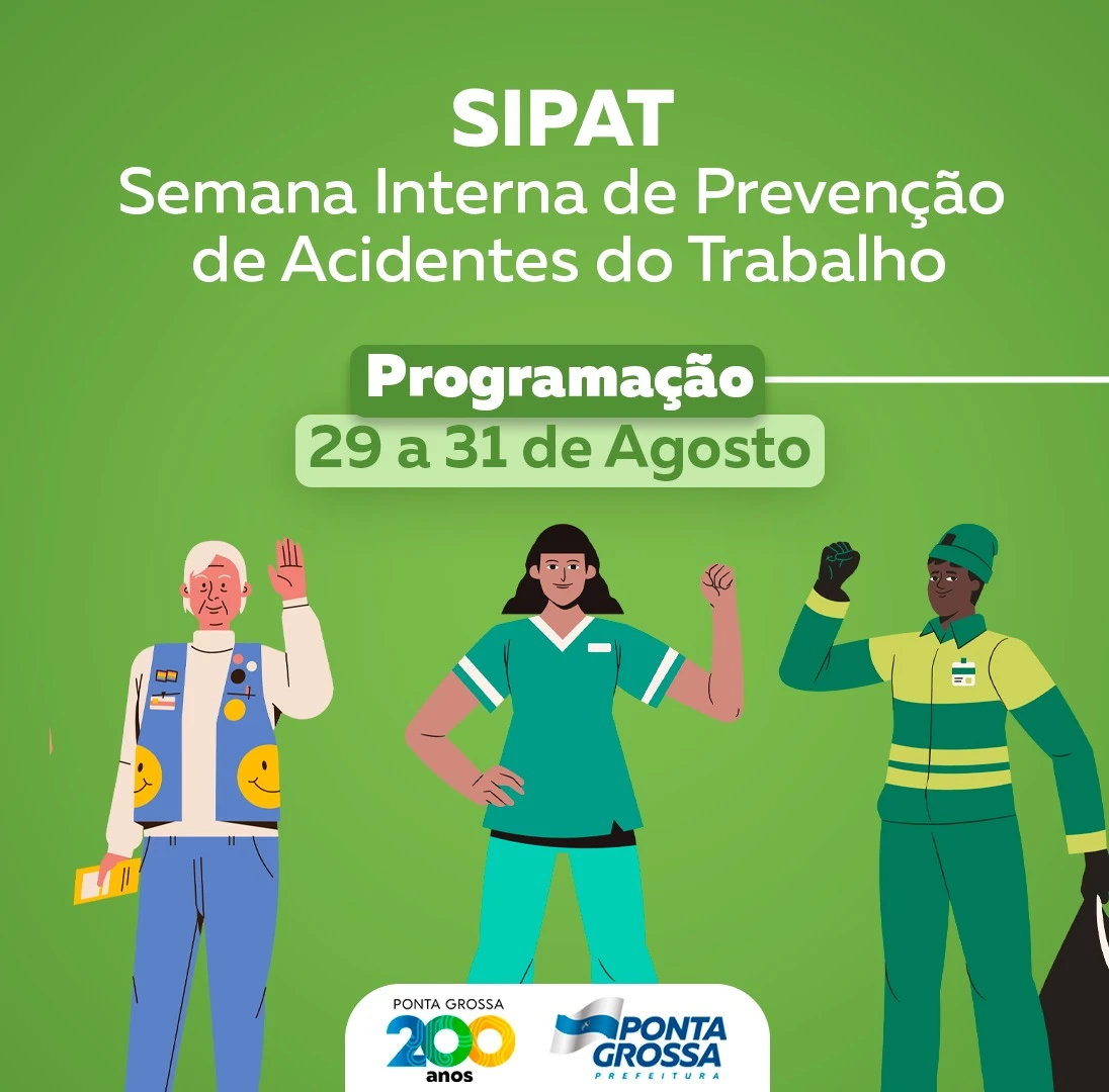 COM ASSESSORIAS - De 29 a 31 de agosto, o paço municipal recebe a Semana Interna de Prevenção de Acidentes do Trabalho (SIPAT), que contará com palestras e atividades que visam promover a segurança e saúde, além do sorteio de brindes. A ação organizada pela Comissão Interna de Prevenção de Acidentes (CIPA) é destinada aos servidores municipais e acontece na Prefeitura e Câmara Municipal de Ponta Grossa.