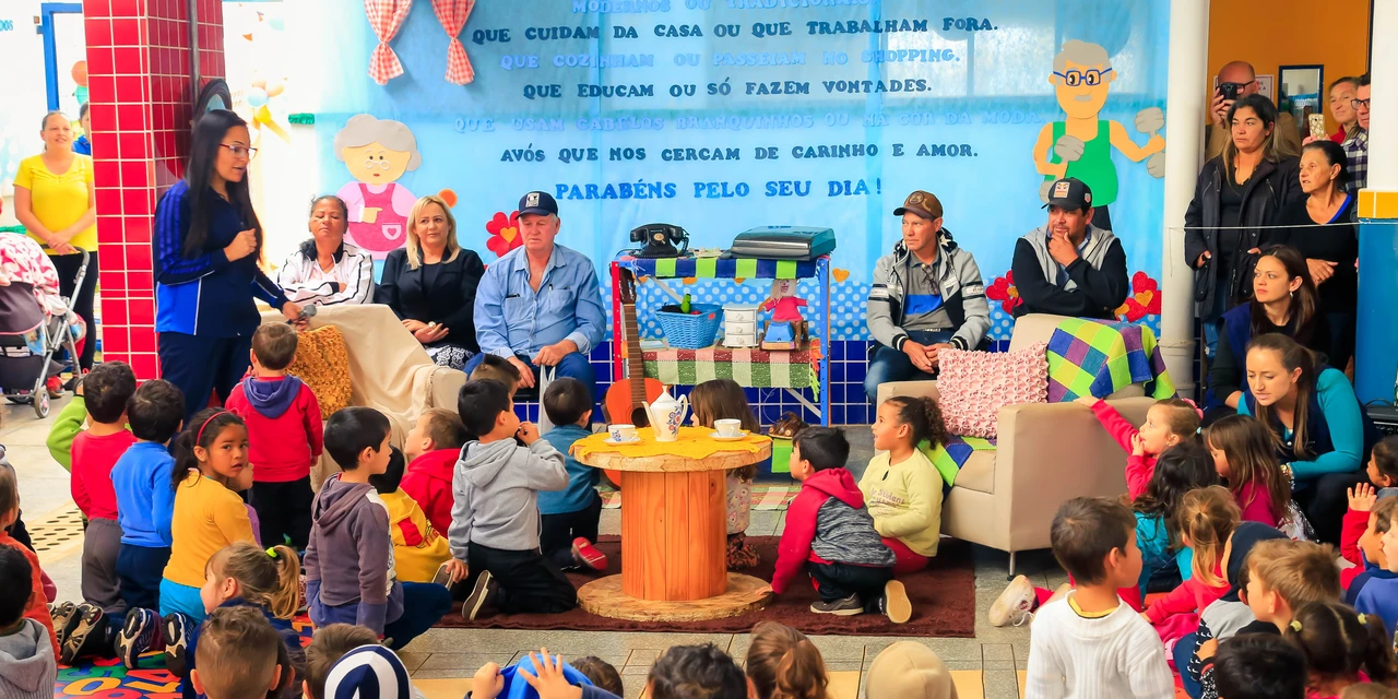 IMPRENSA/Ponta Grossa - O Centro Municipal de Educação Infantil Vereadora Nassima Sallum tornou-se, nesta semana, a 'casa da vovó'. A ação fez parte do projeto 'Família na Escola' e foi uma homenagem a eles. Os alunos conheceram as memórias, brincadeiras, objetos, histórias e uma receita de bolo caseiro. Os protagonistas do evento foram os avós, que ensinaram as crianças sobre vários assuntos - valorizando seu papel na formação das crianças.