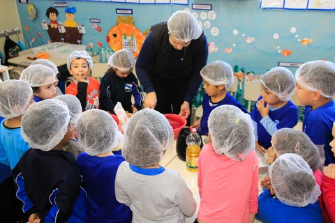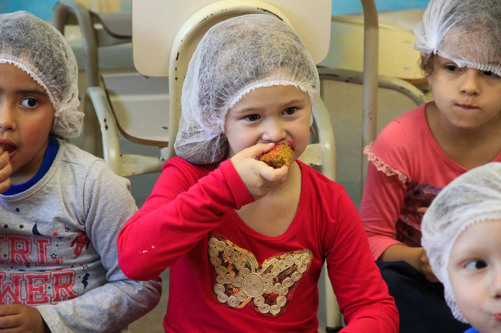Na prática, os pequenos foram transformados em mini chefs por um dia. O ingrediente principal: beterrabas. O desafio: fazer, além do suco, o fabuloso “Red Velvet”, o lindo e delicioso bolo vermelho. Após a colheita da raiz tuberosa e o plantio de novas mudas feitas por todas as crianças, elas usaram a própria produção na aula de culinária. Assim, as próprias crianças foram as protagonistas, ensinando as receitas aos alunos com o auxílio das professoras. O bolo e o suco fizeram sucesso e não sobrou nenhum pedaço para contar a história. Mais de 100 crianças participaram da ação.