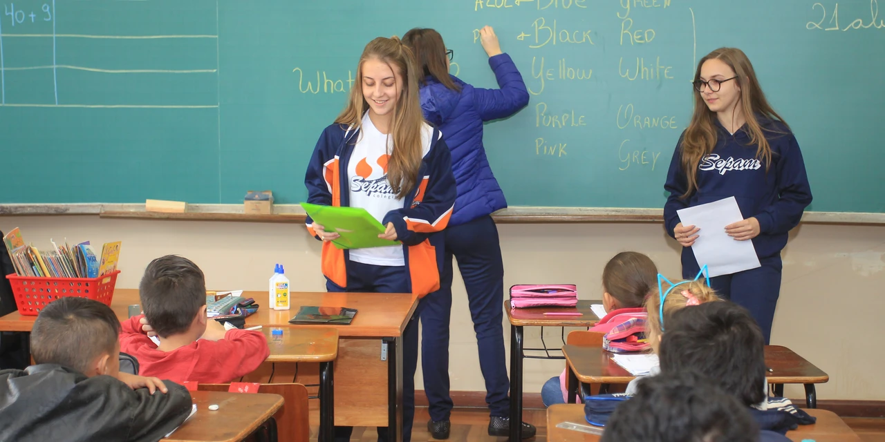 No Step by Step, desde 2007, crianças da rede municipal de ensino recebem aulas de inglês ministradas por estudantes do Ensino Médio do Sepam. “O principal motivo de participar do projeto é fazer esse trabalho sem pensar em remuneração, apenas com o ideal de compartilhar nosso conhecimento com os outros”, conta o aluno do 1º do Ensino Médio e participante do Step by Step Davi Baggio.