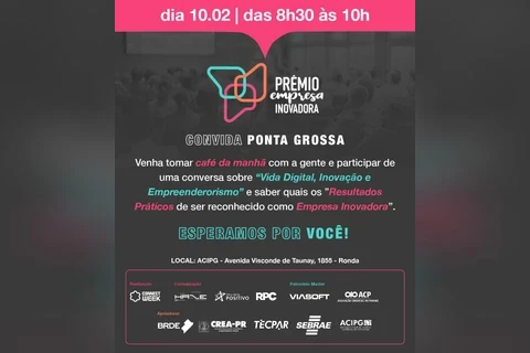Quer participar? Então anote na agenda: a equipe estará em Ponta Grossa no dia 10/02, no auditório da ACIPG (Associação Comercial, Industrial e Empresarial de Ponta Grossa – Av. Visconde de Taunay, 1855 – Ronda).