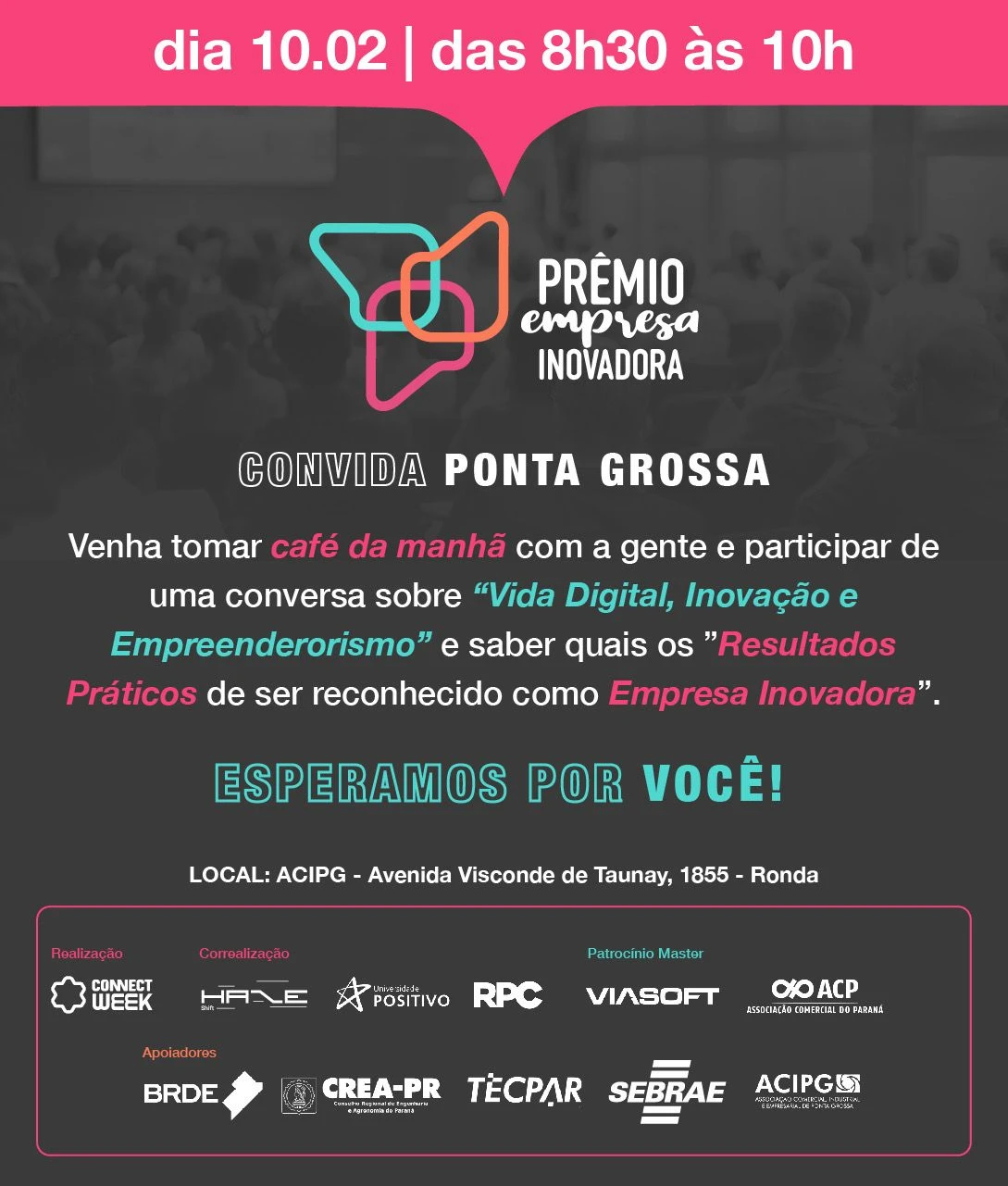 Cenário de inovação está mais forteEm sua segunda edição, o prêmio está ainda mais encorpado. Realizado pelo Connect Week, tem o incentivo do Governo do Paraná (por meio Secretaria de Inovação, Modernização e Transformação Digital), patrocínio master da Viasoft e Associação Comercial do Paraná (ACP). A correalização é assinada pela RPC, pela Haze Shift Consultoria de Inovação e pela Universidade Positivo (UP).