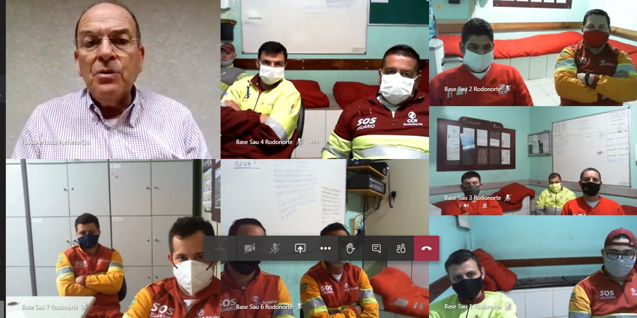 “Tivemos uma primeira experiência muito boa, que foram as reuniões on-line de orientação sobre protocolos e atendimento a casos suspeitos da Covid-19. A partir daí, passamos a trabalhar assuntos teóricos sobre protocolos de atendimento a acidentes e atendimentos clínicos”, explica o Dr. Dalton Gomes, responsável pelos treinamentos do APH na CCR RodoNorte. Antes da pandemia, os profissionais se reuniam na sede da empresa, de forma escalonada, para participar das atividades regulares.