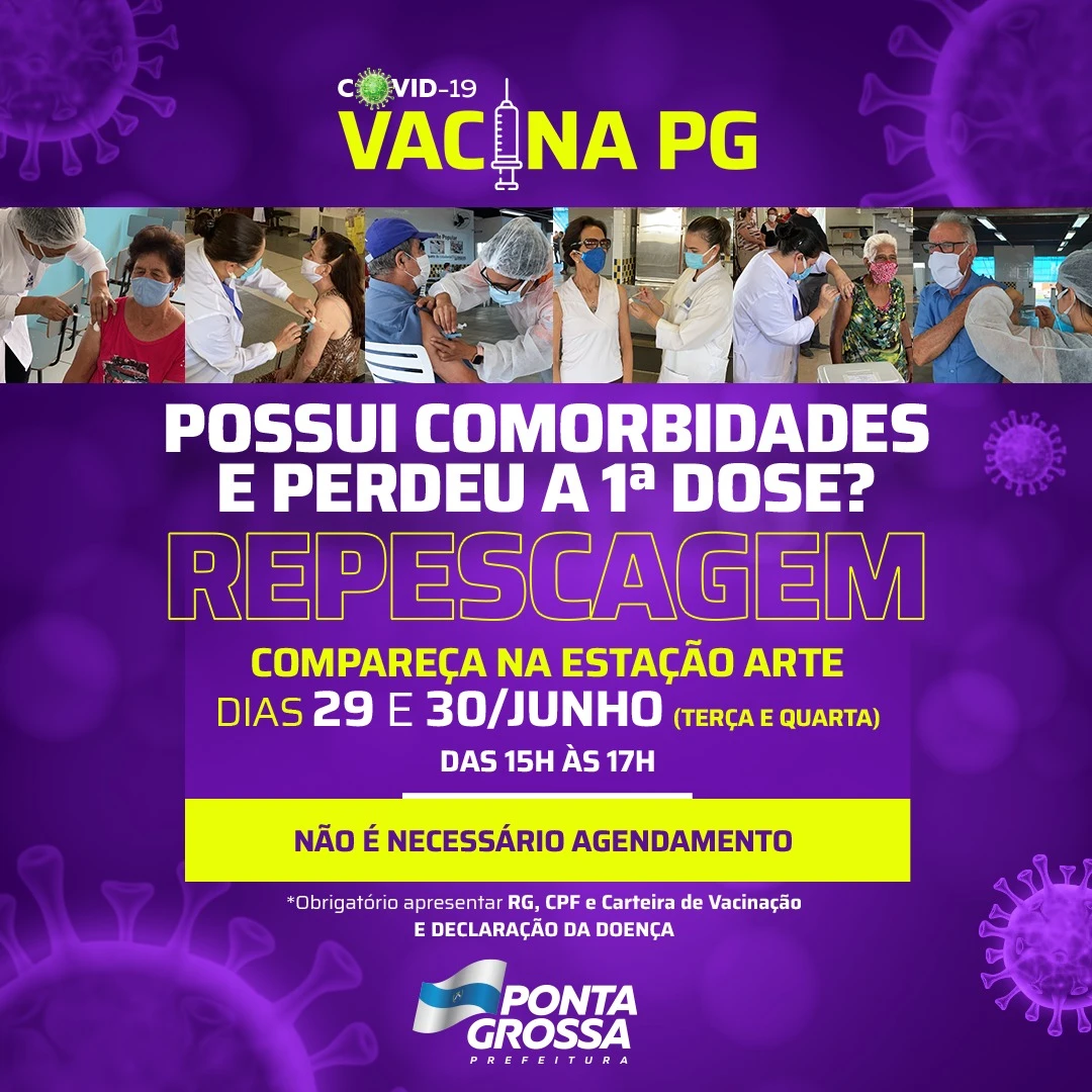 A imunização será realizada das 15h às 17h, exclusivamente na Estação Arte. A FMS informa que para esta repescagem da vacinação não será necessário agendamento no site da Prefeitura