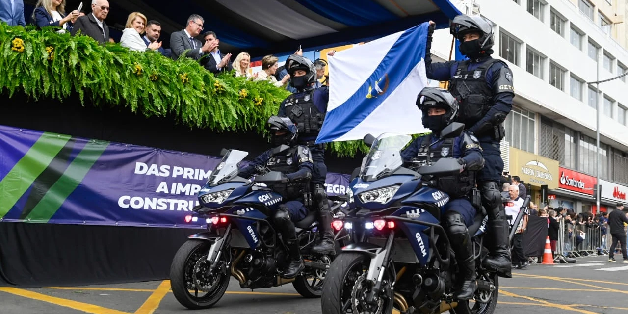 Na sequência, entidades civis, escolas, clubes de serviço, grupos culturais e esportivos também marcaram presença, reforçando o espírito de união e pertencimento à cidade. Para fechar o desfile, os novos ônibus da Viação Campos Gerais (VCG), que farão parte da frota de transporte coletivo do município, foram apresentados oficialmente às autoridades e à população.