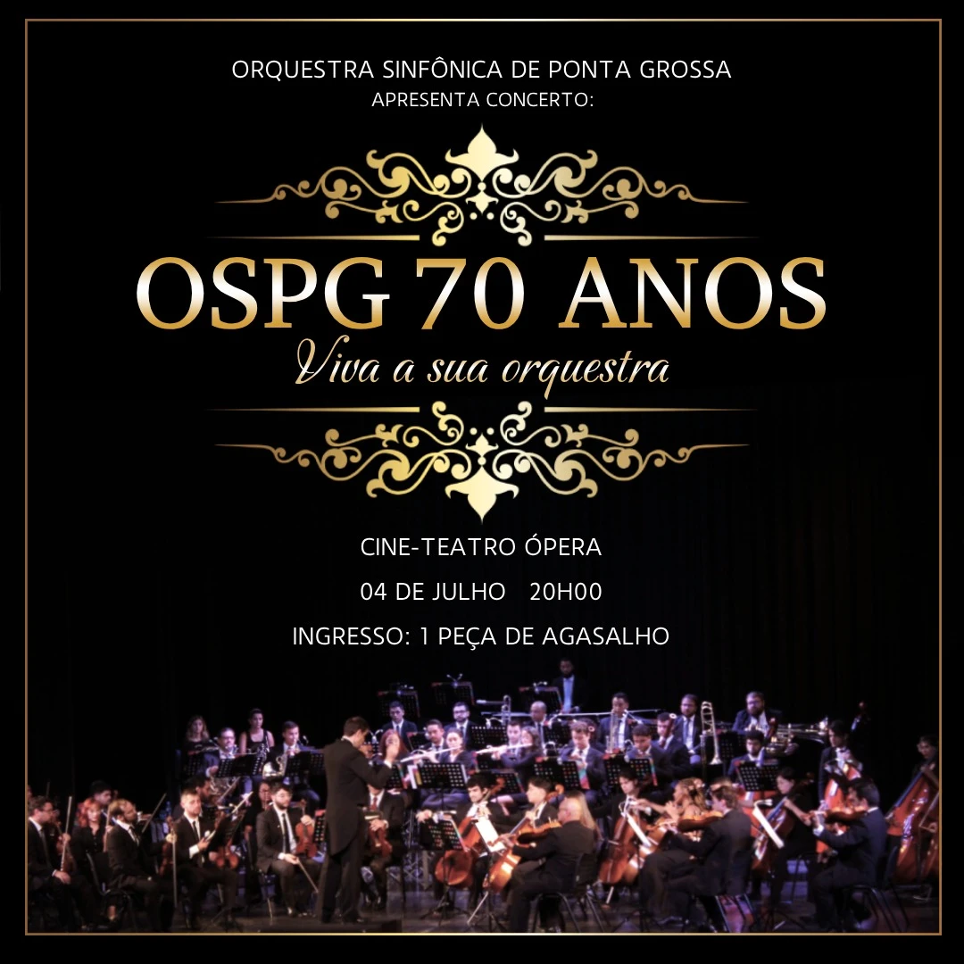 COM ASSESSORIAS - No dia 4 de julho, quinta-feira, a Orquestra Sinfônica de Ponta Grossa (OSPG) celebra 70 anos de uma trajetória marcada por superação, talento e amor à arte. Para homenagear essa data tão significativa, a orquestra realizará um grandioso concerto que dará início à temporada especial "OSPG 70 ANOS - VIVA SUA ORQUESTRA!". O espetáculo começa às 20 horas, e a entrada é uma peça de agasalho, ressaltando a importância de unir cultura e solidariedade.