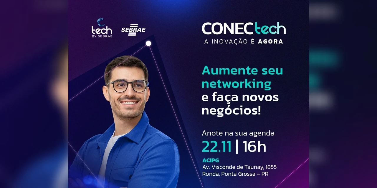 COM ASSESSORIAS - Na próxima terça-feira (22), o Sebrae/PR realiza em Ponta Grossa, na região dos Campos Gerais, o Conectech, na nova sede da Associação Comercial, Industrial e Empresarial de Ponta Grossa (Acipg), das 16h às 20h. O evento marca o encerramento do Tech By Sebrae, programa que promove a evolução dos pequenos negócios em termos de gestão, inovação, estratégias digitais e expansão de mercado, e que contou com a participação de 69 empresas.