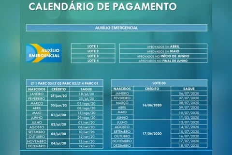 Confira no quadro a seguir o calendário de pagamento de cada lote, de acordo com o mês de nascimento: