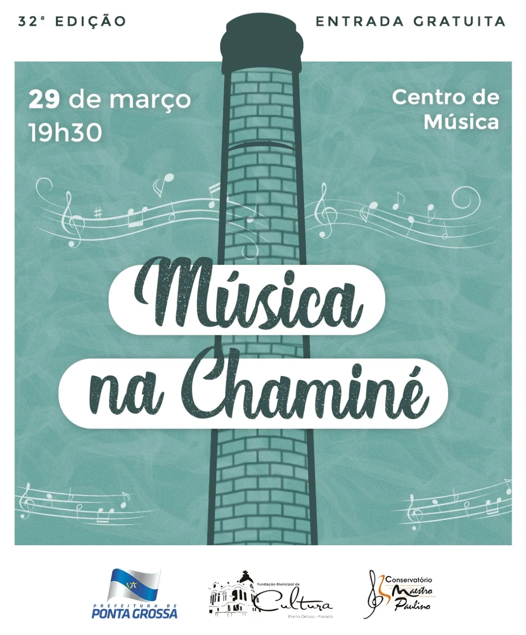 Luana Caroline Nascimento/Ponta Grossa - Evento tradicional do Conservatório Maestro Paulino, o Música na Chaminé irá iniciar a temporada 2019 no dia 29 de março. Promovido pela Prefeitura de Ponta Grossa, por meio da Fundação Municipal de Cultura, o projeto reúne professores e alunos para uma hora de muita música, tanto erudita quanto popular. A atividade será às 19h30, no auditório do Conservatório, com entrada gratuita.