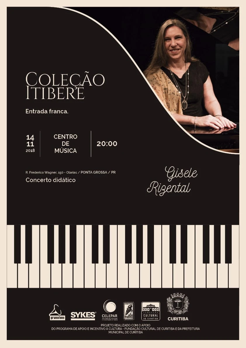 Luana Caroline Nascimento - Na próxima quarta-feira, 14, a pianista Gisele Rizental Pascolat estará em Ponta Grossa para um recital gratuito no auditório do Centro de Música. No repertório terá obras de José Itiberê de Lima e Brasílio Itiberê registradas no último CD da pianista, dedicado exclusivamente ao compositor. O recital tem entrada gratuita e inicia às 20h.