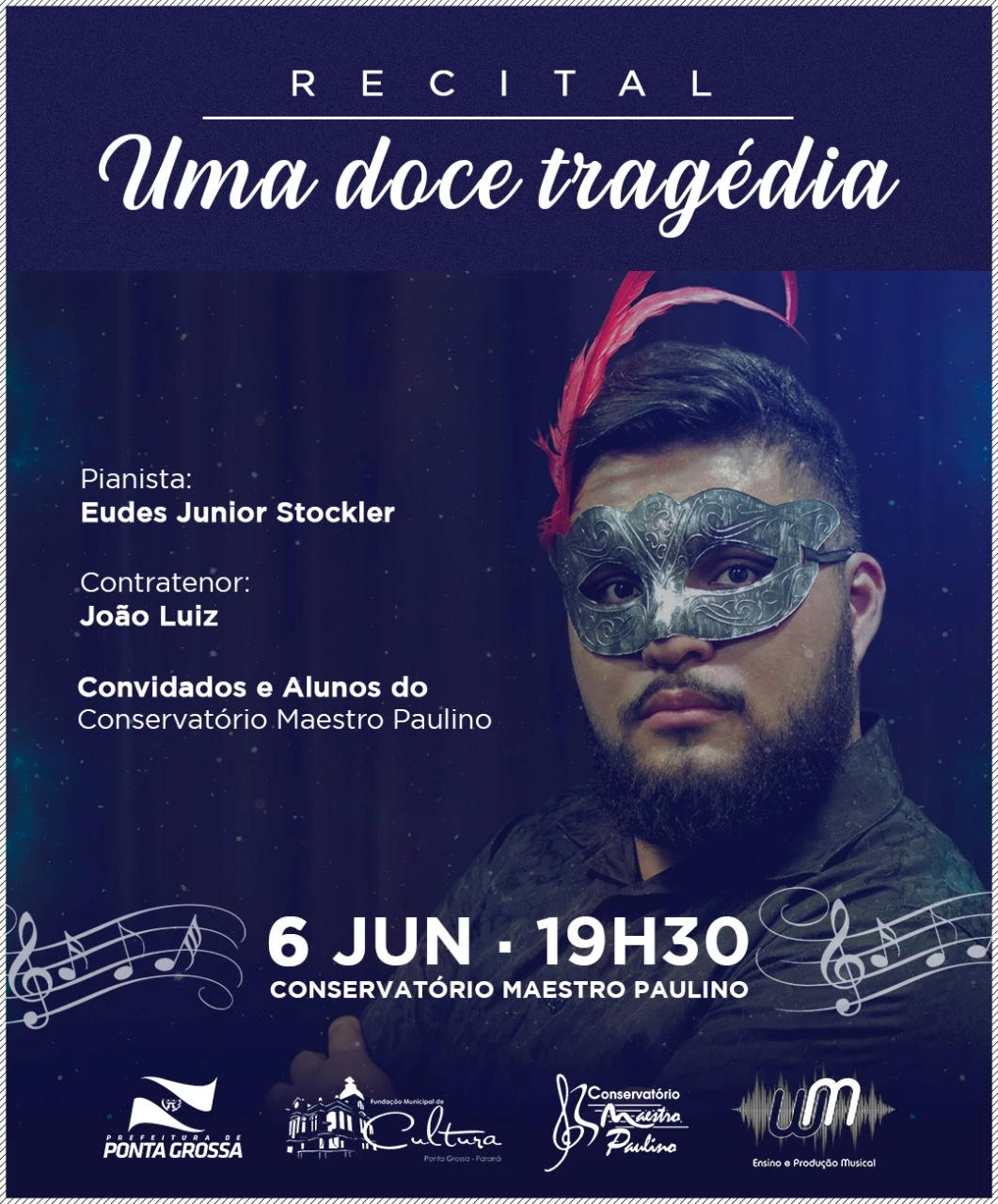 João Luiz Gomes Junior, solista principal, afirma que o público pode esperar “um misto de angústias e dramas da vida com uma exagerada dose de sarcasmos e brincadeiras nas canções escolhidas nesse repertório”. O recital terá também a presença de cantores convidados, tanto do Conservatório como do Coro Cidade de Ponta Grossa. “Dentre eles, quatro solistas que representarão um recitativo de ópera”, completa João, que é aluno do 7° módulo do curso de Canto Lírico do Conservatório e elaborou o repertório ao lado da professora Julcy Rodrigues ao decorrer dos estudos na instituição.