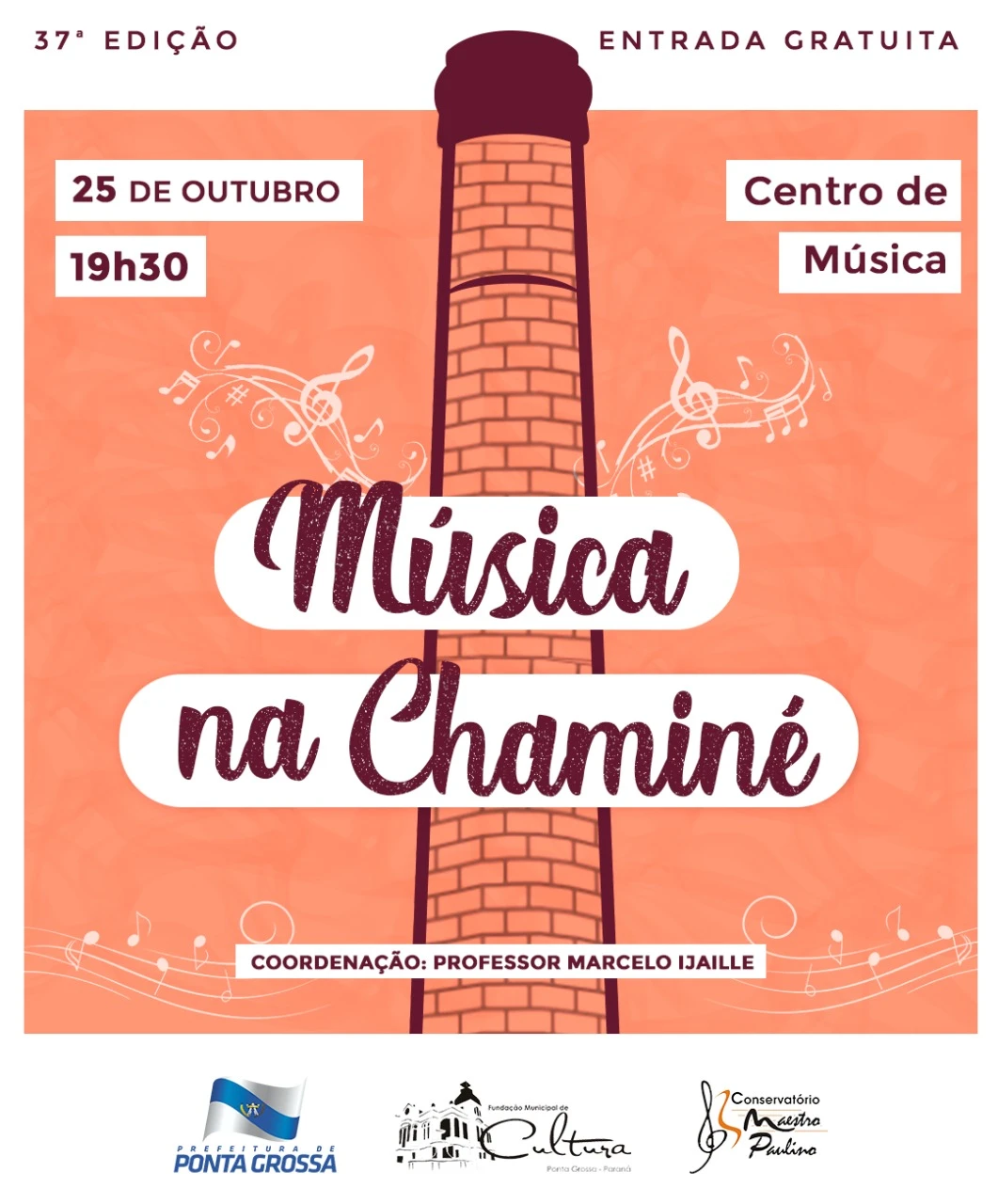Luana Caroline Nascimento/Ponta Grossa - Nesta sexta-feira, 27, os alunos e professores do Conservatório Maestro Paulino, escola mantida pela Prefeitura de Ponta Grossa e pela Fundação Municipal de Cultura, se apresentam no Centro de Música em mais uma edição do Música na Chaminé. O evento começa às 19h30 e a entrada é gratuita.