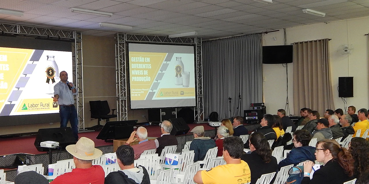Na segunda palestra do evento, no período da tarde, Cristiano Nascif, diretor da empresa Labor Rural, de Minas Gerais, abordou o tema “Gestão de propriedades leiteiras em diversos níveis de gestão”. O zootecnista e mestre em Produção de Ruminantes salientou que o objetivo da gestão é promover resultados, colocando em ênfase três itens da produção leiteira – escala de produção, gasto com concentrados e gasto com volumosos – que representam 75% do sucesso da propriedade. Nascif apresentou resultados de estudo realizado pela empresa com dados de 60 fazendas do Paraná, com o que sintetizou que todos os sistema de produção permitem lucro desde que os recursos da propriedade sejam usados da melhor maneira possível. Ainda, alertou que entre 45% e 50% do plantel deve estar em lactação e que o capital de giro deve corresponder a 50% do capital imobilizado na propriedade.