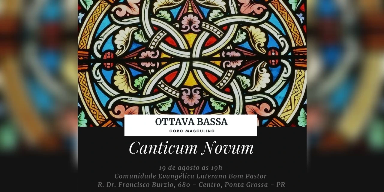 IMPRENSA/Ponta Grossa - As vozes de 34 tenores, barítonos e baixos ecoarão no próximo domingo, 19, às 19h, na Igreja Luterana Bom Pastor. O Coro Masculino Ottava Bassa, de Curitiba, traz à Ponta Grossa a série ‘Canticum Novum’, apresentando repertório sacro com obras de renomados compositores antigos e contemporâneos, especialmente desenvolvido para igrejas. Entre as obras estão ‘Hallelujah’, de Leonard Cohen, ‘Ave Maria’, de Caccini, e ‘Smile’, de Charles Chaplin. A entrada é gratuita e o concerto tem o apoio da Fundação Municipal de Cultura.