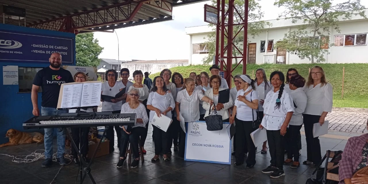 COM ASSESSORIAS - O Coral Sol Nascente, composto por 25 coralistas, todos maiores de 60 anos, que frequentam o Centro de Convivência do Idoso (CECON) Nova Rússia, da Fundação de Assistência Social (FASPG), da Prefeitura de Ponta Grossa, iniciaram as apresentações natalinas na cidade. Com canções tradicionais, o grupo embalará os munícipes em mais três apresentações, neste mês, em um arranjo que envolve a paisagem sonora urbana com o canto coral.