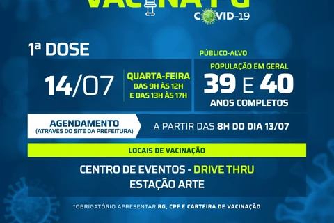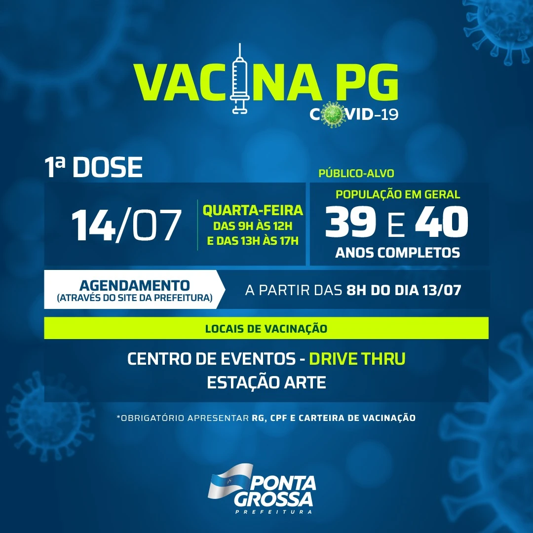 (https://fms.pontagrossa.pr.gov.br/vacinacao/). O agendamento estará aberto a partir das 8h de amanhã (13). A vacinação deste público necessita da apresentação do RG, CPF e carteira de vacinação.