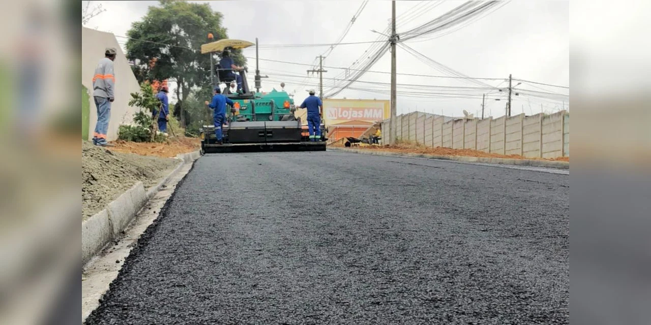 O programa "Asfalto Cidadão" oferta a contratação de pavimentação com parcelamento em até 60 vezes. A obra inclui terraplenagem, galerias pluviais, sub-base, base, meios-fios e asfalto.