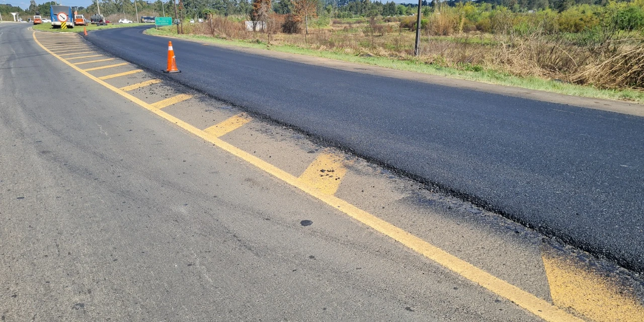 No trecho do Km 341, próximo ao aeroporto Sant´Ana, o pavimento está sendo recapeado para corrigir algumas falhas e defeitos na pista. No trevo de acesso à Teixeira Soares, Km 344, ainda não foram realizadas as manutenções e foram constatadas deformações do pavimento do trevo, com surgimento de panelas, remendos, deformações permanentes com escorregamento de massa e trincas.
