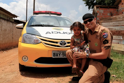 4º CRPM/1º BPM – Sâmara Camargo, de 4 anos de idade, recebeu uma visita diferente na tarde desta quinta-feira (20), em Ponta Grossa/PR.