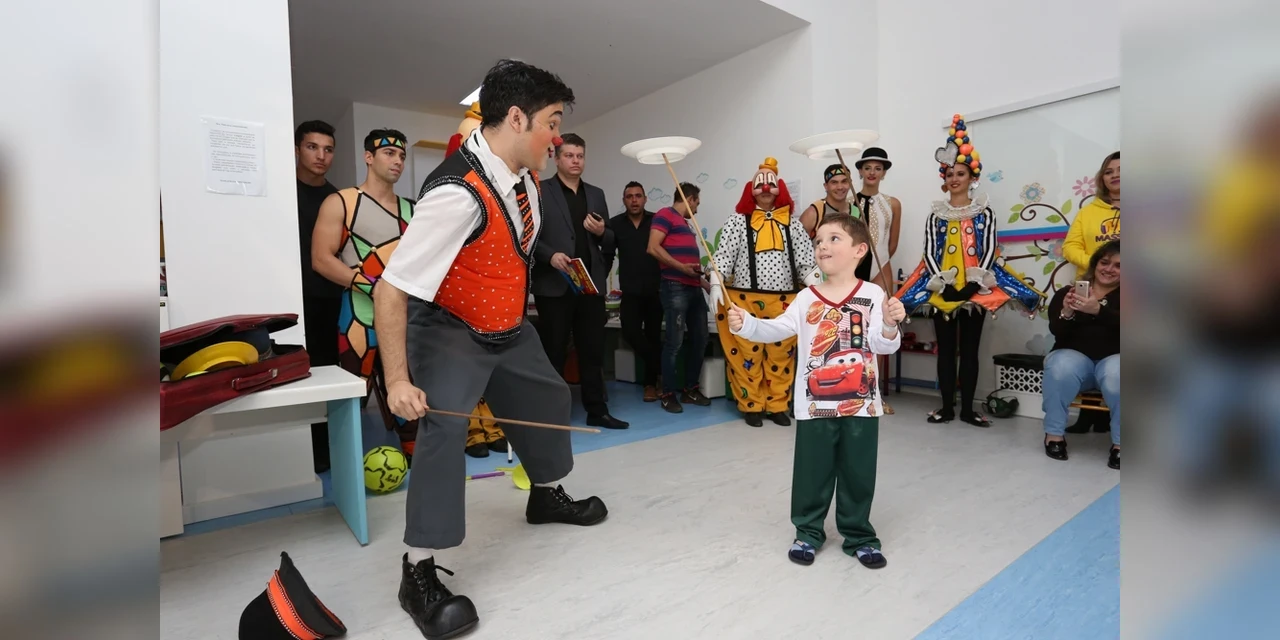 Ana Bitencourt Maravieski/Ponta Grossa - Hoje (27) a tarde foi diferente no Hospital da Criança (HC) João Vargas de Oliveira, as crianças internadas receberam a visita de acrobatas, palhaços e mágicos do Circo Tihany. Os artistas ainda realizaram um pocket show e posaram para fotos com os pequenos.