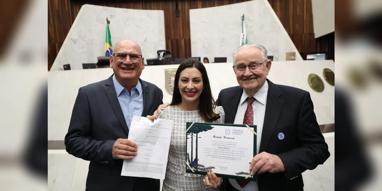 COM ASSESSORIAS - Nesta segunda-feira (23), Dia Nacional do Plantio Direto, a deputada estadual Mabel Canto (PSDB), entregou menção honrosa ao Franke Dijkstra, em razão de seu empenho e pioneirismo para a difusão, divulgação e estabelecimento do sistema de plantio direto no Brasil, papel importante que teve ao lado de Nonô Pereira e Herbert Bartz.