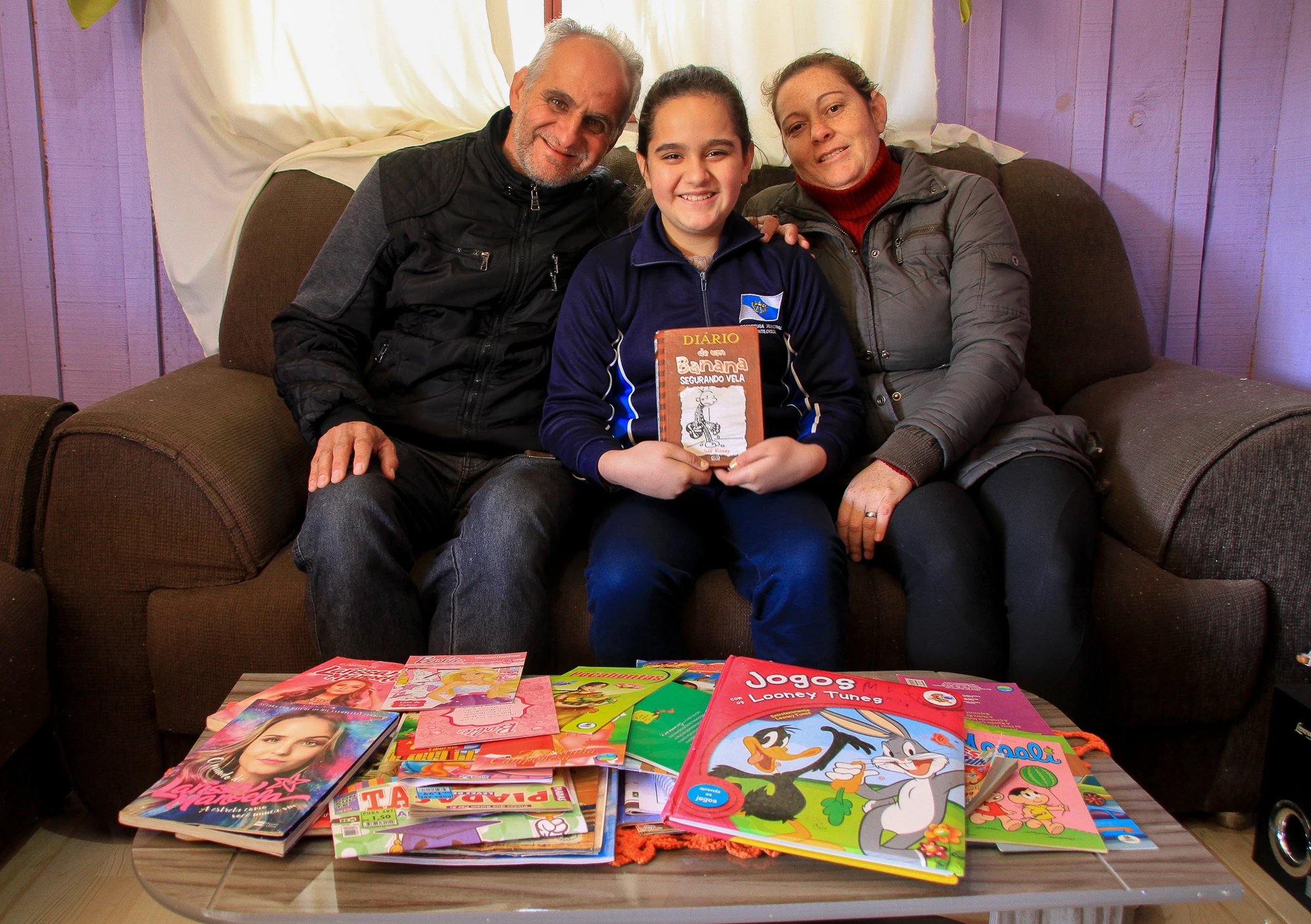 A aluna Maria Luiza Drabecki Guerlinger, de 10 anos, está no 5º ano da escola e escolheu mais um livro para ler junto com os pais, o motorista José Verci Guerlinger e a confeiteira Roseli Aparecida Drabecki. “Nós lemos na sala, no começo da aula, fazemos leitura após o almoço, todos os dias, menos na sexta. Nesse dia nós pegamos livros depois do café e guardamos para trazer para casa e ler com a família. Na segunda nós devolvemos. Eu leio com a mãe e com o pai, leio para eles e eles prestam atenção. A leitura leva para outro lugar”, conta Maria.