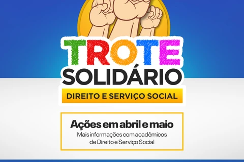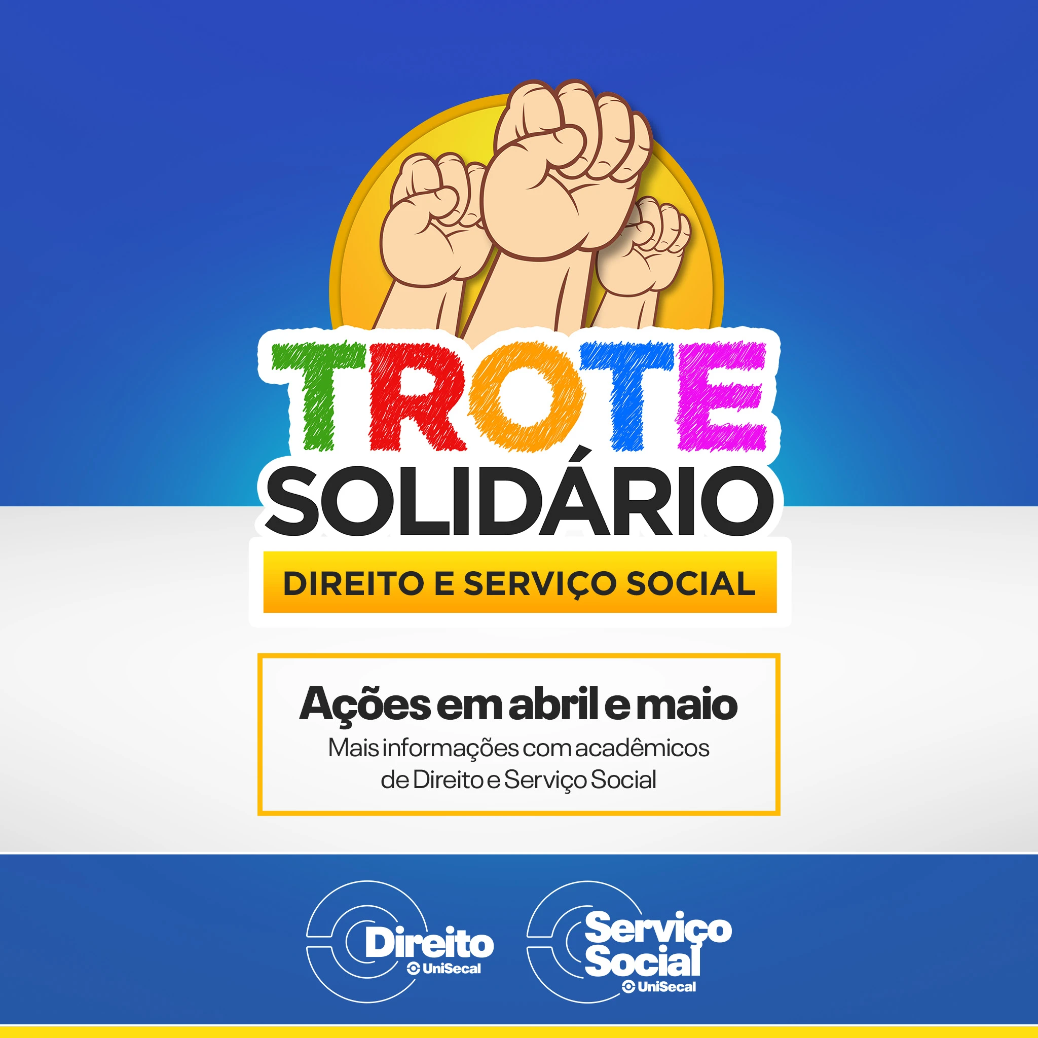 COM ASSESSORIAS - Os calouros dos cursos de Direito e Serviço Social da UniSecal realizarão um ‘Trote Solidário Gastronômico’. A ação de cunho social acontecerá entre os dias 8 de abril e 7 de maio, no Núcleo de Prática Jurídica (NPJ) da instituição, e tem como objetivo arrecadar dinheiro com a venda de produtos alimentícios para o tratamento de saúde de um ex-aluno da UniSecal.