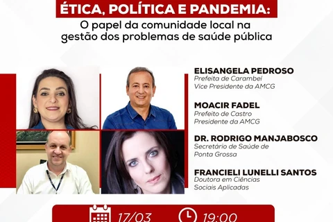 Além dos prefeitos participam do debate o secretário municipal de Saúde de Ponta Grossa, Rodrigo Manjabosco e a doutora em ciências aplicadas, Francieli Lunelli Santos. O evento acontece online às 19 horas e será transmitido pelo zoom. Os interessados devem se inscrever clicando