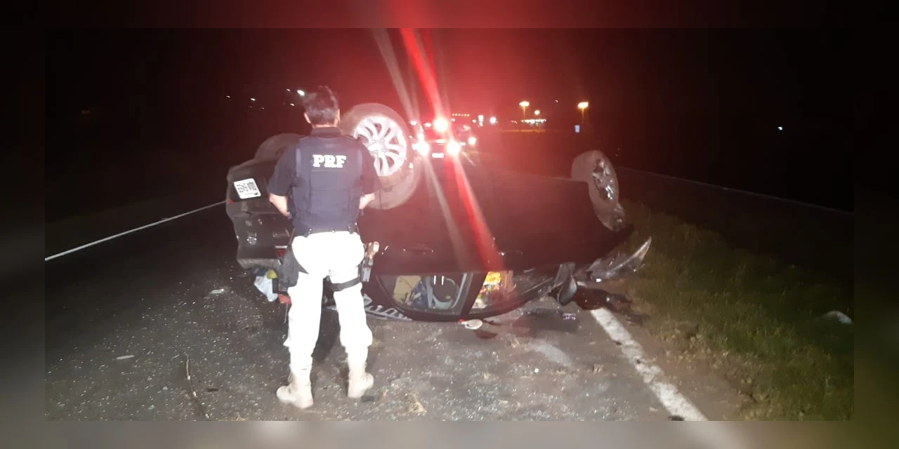 De acordo com a PRF, um carro capotou na rodovia e os três ocupantes do veículo ficaram feridos. O motorista, de 31 anos, teve ferimentos leves, mas os dois passageiros, de 34 e 24 anos, tiveram ferimentos graves e foram levados para hospitais em Ponta Grossa.