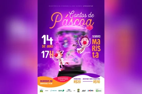 A coordenadora artística da ONG, Micheli Vaz, conta que a peça Contos de Páscoa reúne alguns contos clássicos infantis sob o olhar de palhaços. As histórias contadas por esta perspectiva estarão recheadas com muita aventura, com coelhos monstros e super-heróis. “A partir de um jogo direto com o público, contando com todo o elenco do espetáculo e explorando a linguagem própria do palhaço, é estabelecido um encontro teatral baseado na comicidade e participação. A Encenação busca através da exploração teatral mostrar que todos vemos as histórias de modo diferente e que todas elas podem ser verdade”, relata Micheli.
