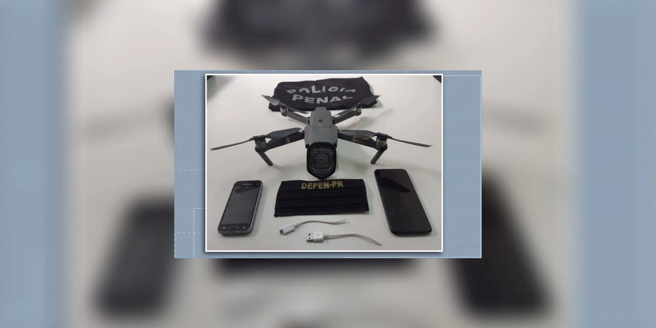 Agentes penitenciários apreenderam um drone que levava celulares e carregadores para dentro da Cadeia Pública Hildebrando de Souza, em Ponta Grossa, nos Campos Gerais do Paraná.
