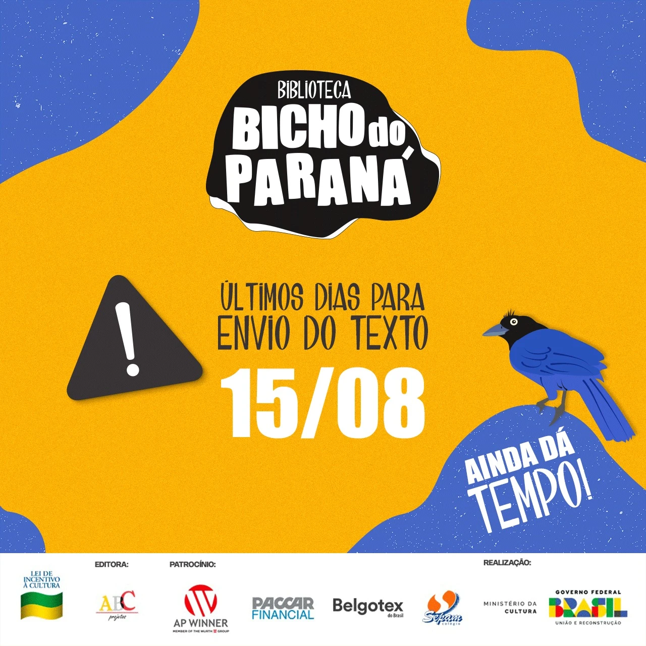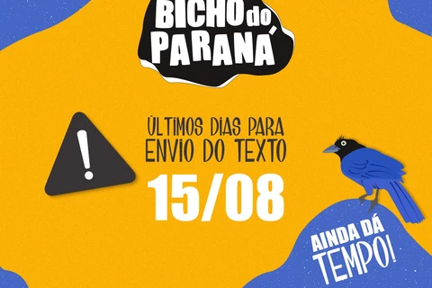 COM ASSESSORIAS -Termina dia 15 de agosto (terça-feira) o prazo de inscrições para o edital Bicho do Paraná, que vai selecionar textos infantojuvenis de escritores paranaenses para serem transformados em até 20 obras literárias no formato e-book. A iniciativa é da Editora ABC Projetos. Os textos selecionados serão ilustrados, passarão pela revisão de profissionais qualificados e editoração eletrônica especializada. Todos os e-books ainda terão ficha catalográfica, ISBN e depósito na Biblioteca Nacional. O edital e o formulário de inscrição podem ser acessados pelo