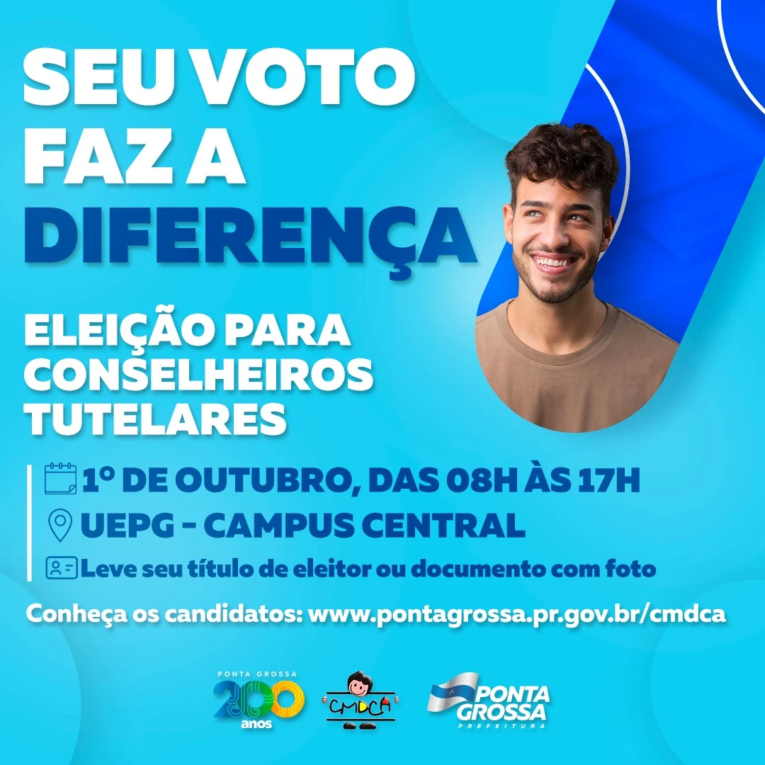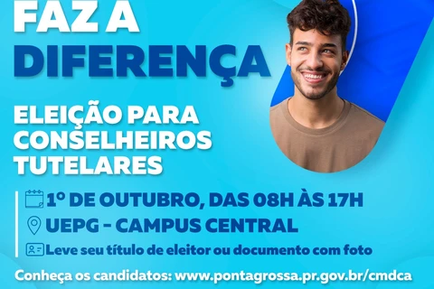 COM ASSESSORIAS - O Conselho Municipal dos Direitos da Criança e do Adolescente convida a população que está em dia com a Justiça Eleitoral para participar da escolha dos 15 novos membros do Conselho Tutelar de Ponta Grossa.