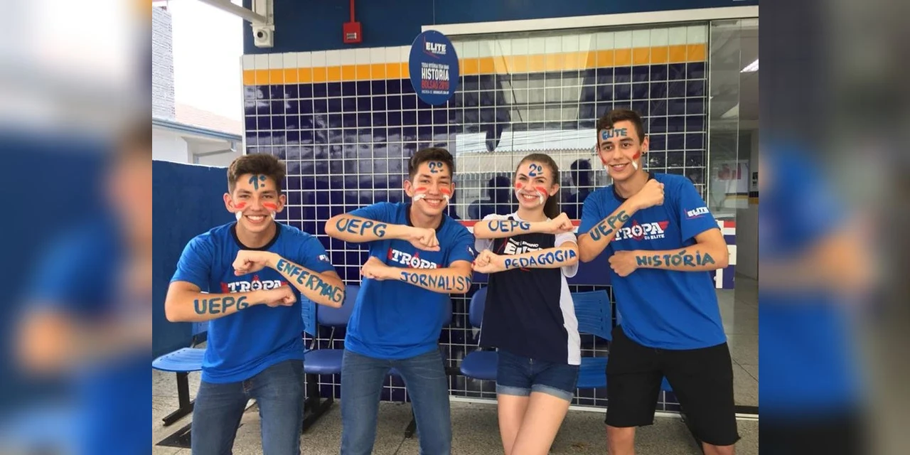 COM ASSESSORIAS - Um aluno da primeira série e cinCo alunos da segunda série do Ensino Médio do Elite Rede de Ensino – unidade Ponta Grossa (PR) - passaram no concorrido vestibular da UEPG. Lucas Kist, estudante da primeira série, passou em sétimo lugar para Engenharia Civil. Os gêmeos Lucas Tiepermann e Gabriel Tiepermann conquistaram o primeiro lugar em Enfermagem e o segundo lugar em Jornalismo, respectivamente. Já Ana Carolina Landuche faturou o segundo lugar no curso de Pedagogia. Letícia Delgobo conquistou a terceira posição em Ciências Biológicas e Lucas de Souza fechou os bons resultados com o décimo lugar no curso de História.