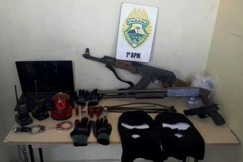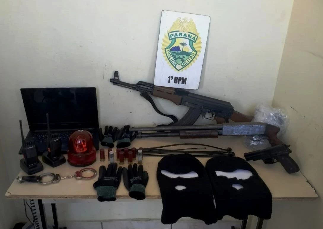 Os esforços desta terça-feira resultaram também numa série de apreensões, com destaque para uma espingarda calibre 12, munições, rádios comunicadores, simulacros de armas de fogo, tipo fuzil e pistola, toucas balaclava, algemas, um aparelho giroflex, similar aos utilizados em veículos policiais e de emergências, além de um automóvel Chevrolet Vectra utilizado pelos infratores.