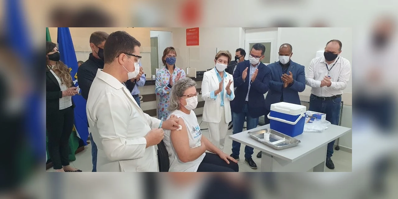 A vacinação aconteceu por volta de 13h em uma cerimônia simbólica na futura sede da Unidade de Pronto Atendimento (UPA) Central, que está em fase final de aquisição de equipamentos, e fica em frente à 3ª Regional de Saúde.