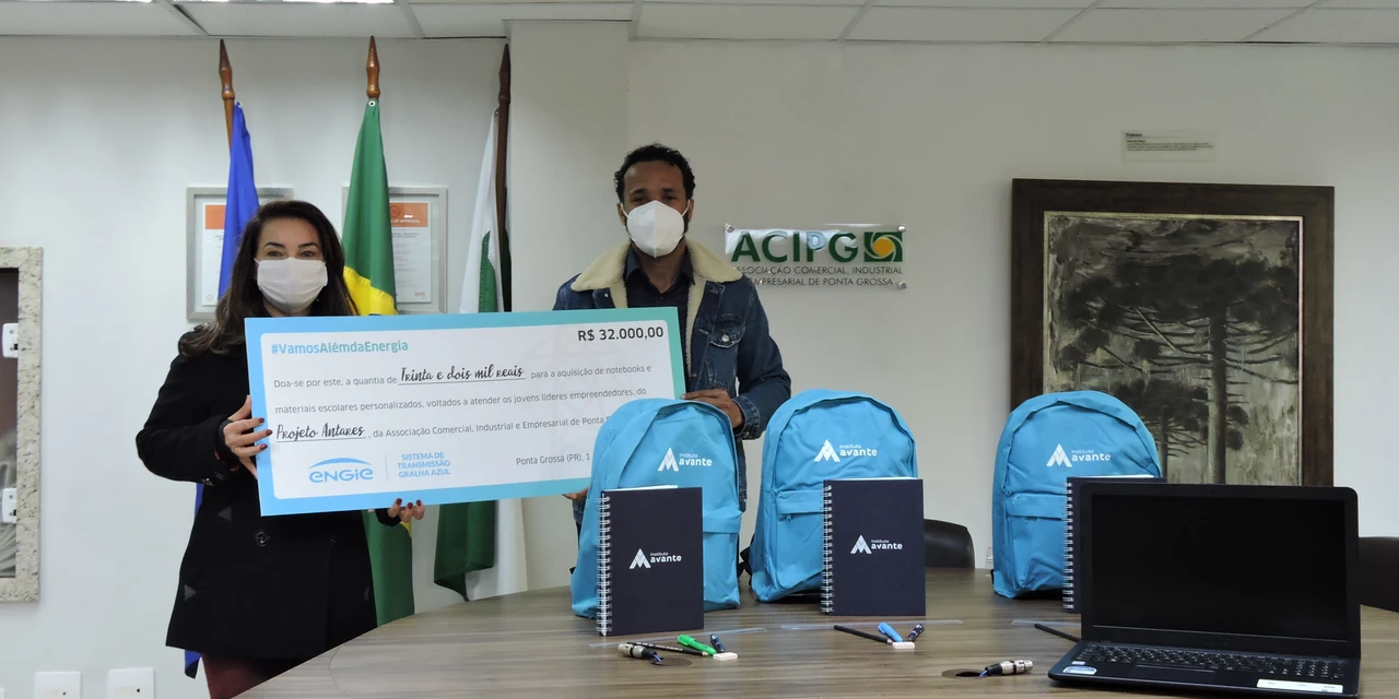 COM ASSESSORIAS - O Projeto Antares, desenvolvido pela Associação Comercial, Industrial e Empresarial de Ponta Grossa, recebeu um cheque no valor de R$ 32 mil da Engie Brasil Energia, que serão utilizados na aquisição de equipamentos e materiais destinados aos jovens participantes do programa.