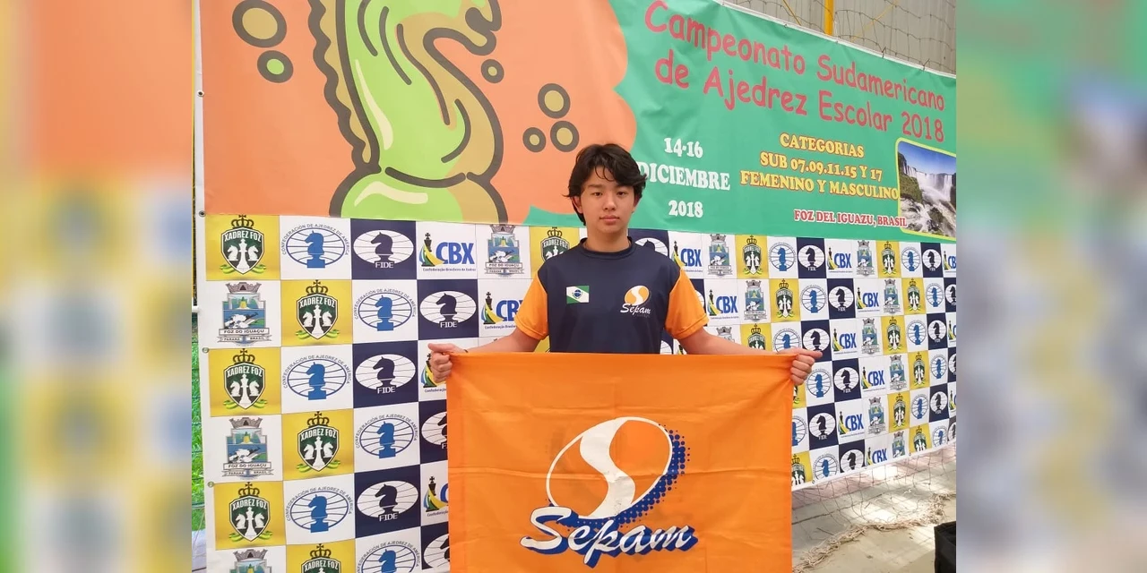 COM ASSESSORIAS - O enxadrista pontagrossense, Leonardo Herai Borges, do Colégio Sepam, conquistou o 1º lugar na categoria sub 13 no Campeonato Sul-Americano de Xadrez Escolar de 2018, realizado no último fim de semana em Foz do Iguaçu (PR).