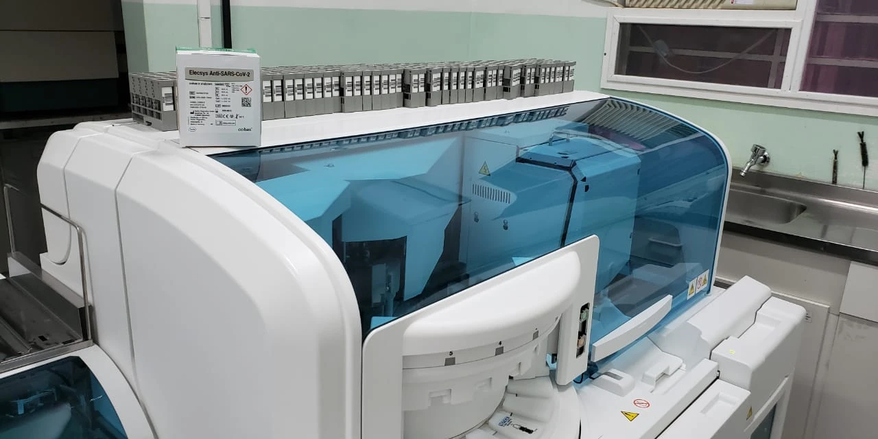 O Cobas é um equipamento de eletroquimioluminescência que já estava disponível no Laboratório Municipal para a obtenção de exames de sangue para a tiroide (TSH e T3), câncer de próstata (PSA), hepatites, Vírus da Imunodeficiência Humana (HIV) e toxoplasmose. Com o cenário atual de pandemia da Covid-19, uma adaptação do equipamento foi feita para poder realizar também os testes sorológicos para a detecção dos anticorpos contra o vírus.
