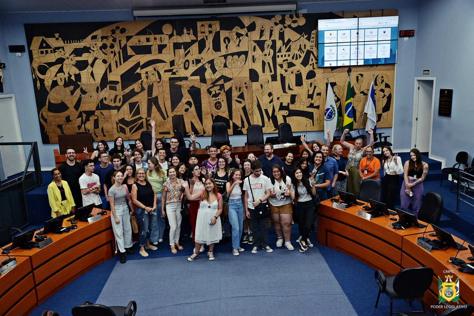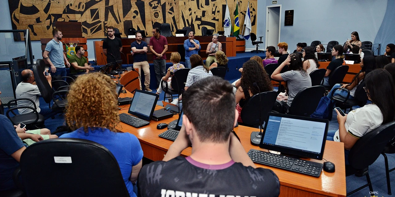 COM ASSESSORIAS - Nesta quinta-feira (9), a Câmara de Ponta Grossa recebeu a visita dos acadêmicos do curso de Jornalismo, da Universidade Estadual de Ponta Grossa (UEPG). Ao todo, 30 estudantes e duas professoras tiveram a oportunidade de conhecer mais do funcionamento do Poder Legislativo Municipal e fazer perguntas para vereadores.