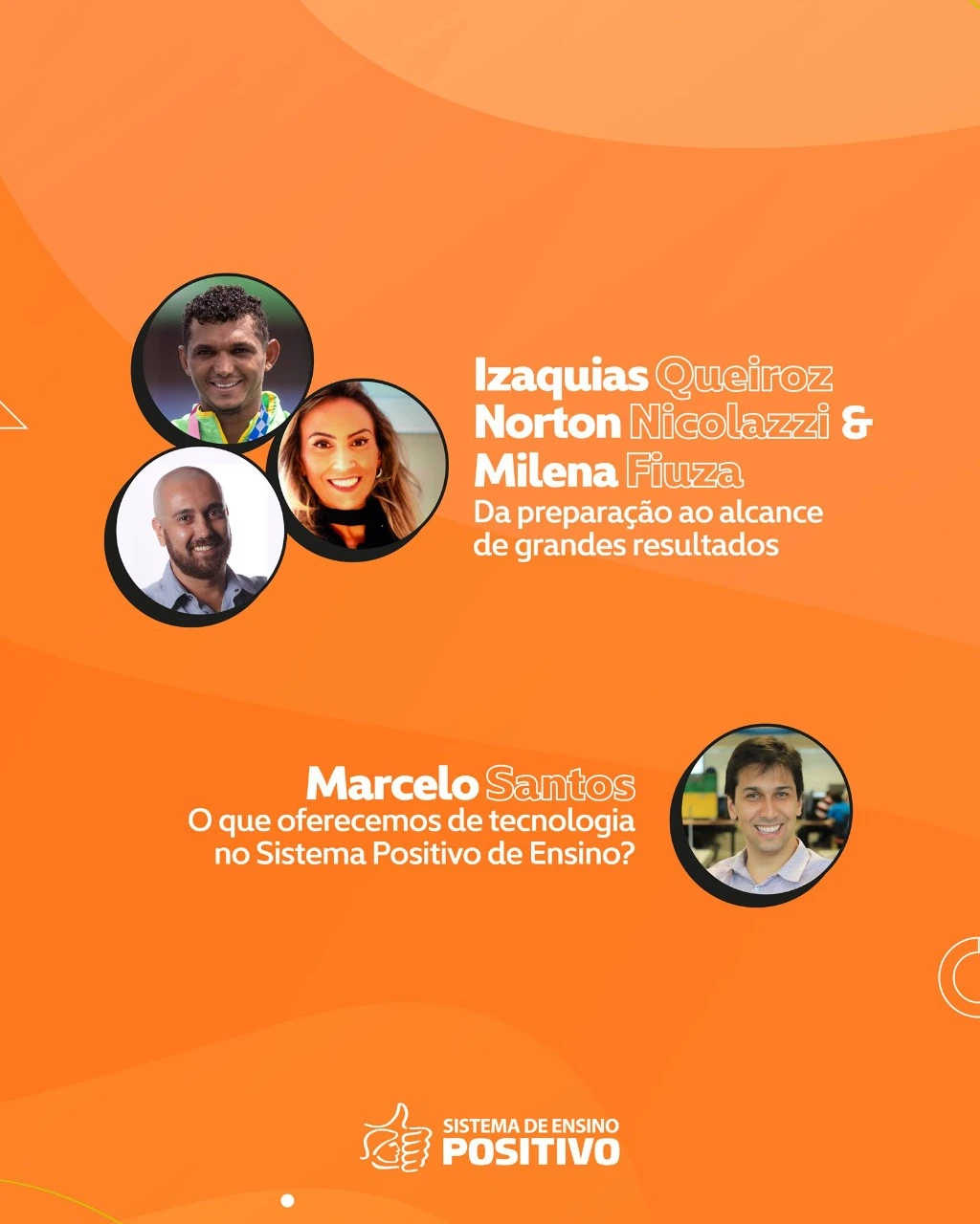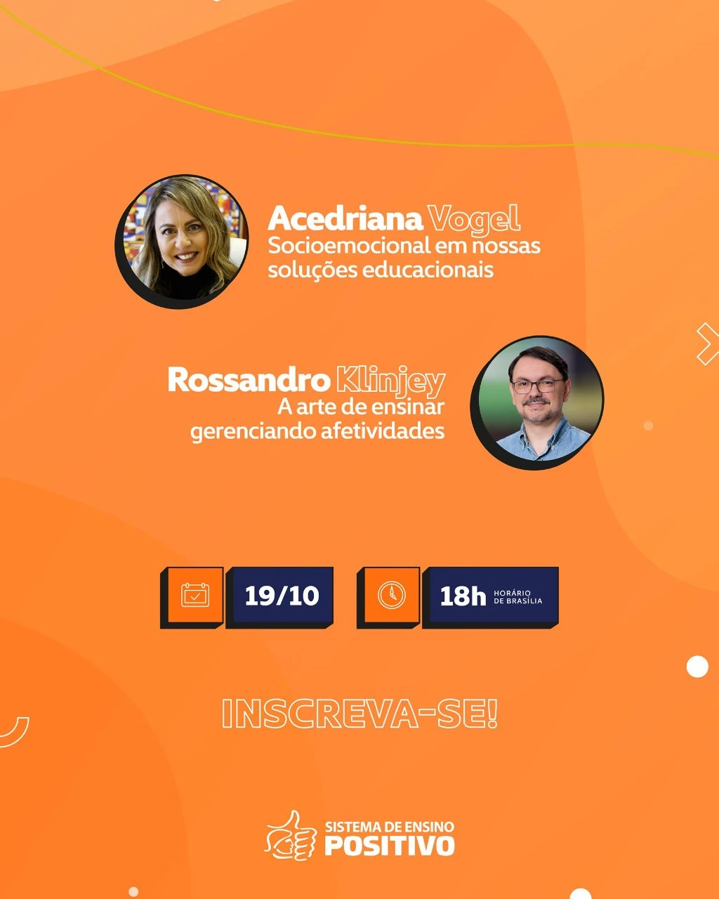 Por sua vez, o diretor executivo de tecnologia do Sistema Positivo de Ensino, Marcelo Santos, traz as novidades tecnológicas disponíveis para as escolas conveniadas. Completam a programação o escritor e psicólogo clínico Rossandro Klinjey, falando sobre a arte de ensinar gerenciando atividades, e a diretora pedagógica do Sistema Positivo de Ensino, Acedriana Vogel, que fala sobre como as questões socioemocionais estão presentes nas soluções educacionais da marca.