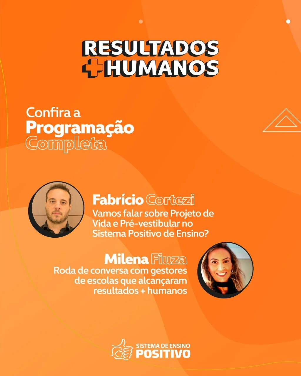Além desse debate, o evento vai percorrer uma série de aspectos relacionados aos resultados com olhar humanizado. Uma roda de conversa com gestores de escolas que alcançaram resultados mais humanos vai trazer a visão de quem dá o suporte necessário para que os estudantes atinjam todo seu potencial. O diretor de conteúdo pedagógico e editorial do Sistema Positivo de Ensino, Fabrício Cortezi, fala sobre Projeto de Vida e Pré-Vestibular.