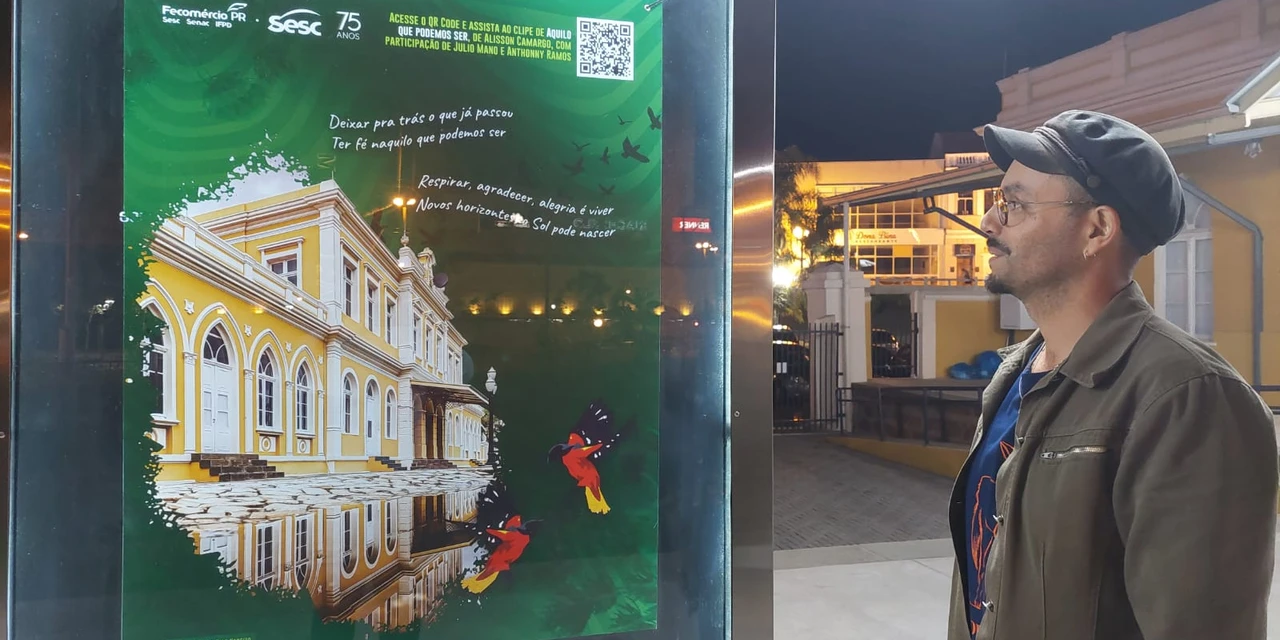 COM ASSESSORIAS - Segue em cartaz na plataforma do Sesc Estação Saudade, em Ponta Grossa, a exposição Revoada Sessions, que reúne imagens de atrativos turísticos locais com a música de compositores ponta-grossenses. Em cada um dos oito painéis o visitante poderá ver uma fotografia entremeada pela poesia de uma canção. Ao lado, um QR Code leva para o videoclipe daquela música, gravada ao vivo no local fotografado. A exposição pode ser visitada gratuitamente de terça a sexta (das 9h às 21h) e sábados e domingos (das 10h às 19h).