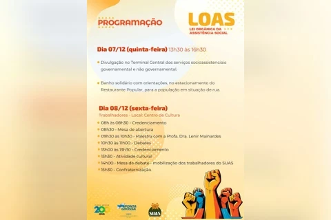 Já na sexta-feira (08), a programação é voltada aos trabalhadores do SUAS e será realizada no Centro de Cultura, das 8h às 15h30.