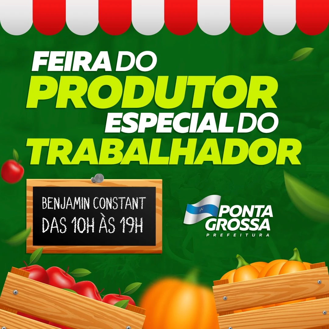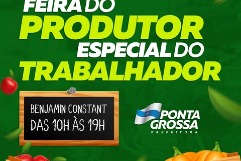 COM ASSESSORIAS - A Prefeitura de Ponta Grossa, por meio da Secretaria Municipal de Agricultura, Pecuária e Abastecimento, realiza nesta quarta-feira (1°), feriado do Dia do Trabalhador, uma edição especial da Feira do Produtor.