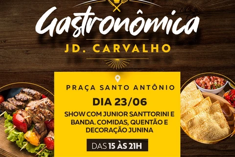 COM ASSESSORIAS - Muita animação, com música ao vivo e comidas típicas da época, como pinhão, pipoca, pé de moleque e quentão vão ser as atrações da Feira Gastronômica Junina, que será realizada na próxima sexta-feira (23), na Praça Dom Antônio Mazarotto, no Jardim Carvalho.