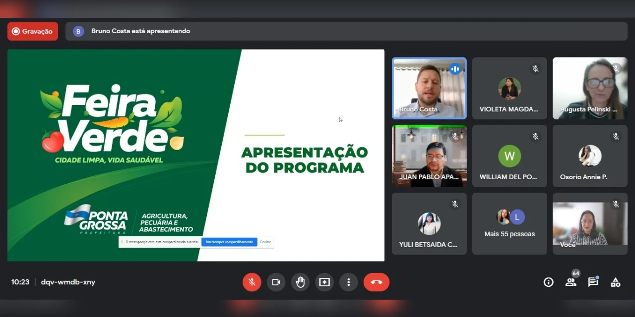 COM ASSESSORIAS - A Prefeitura de Ponta Grossa, por meio da Secretaria Municipal de Agricultura, Pecuária e Abastecimento, apresentou o Programa Feira Verde como uma das iniciativas empregadas na cidade para amenizar os impactos da pandemia da covid-19, na segurança alimentar do público em vulnerabilidade social, em um evento remoto, realizado pela Universidad Nacional Mayor de San Marcos, do Peru, em parceria com a Universidade Estadual de Ponta Grossa.