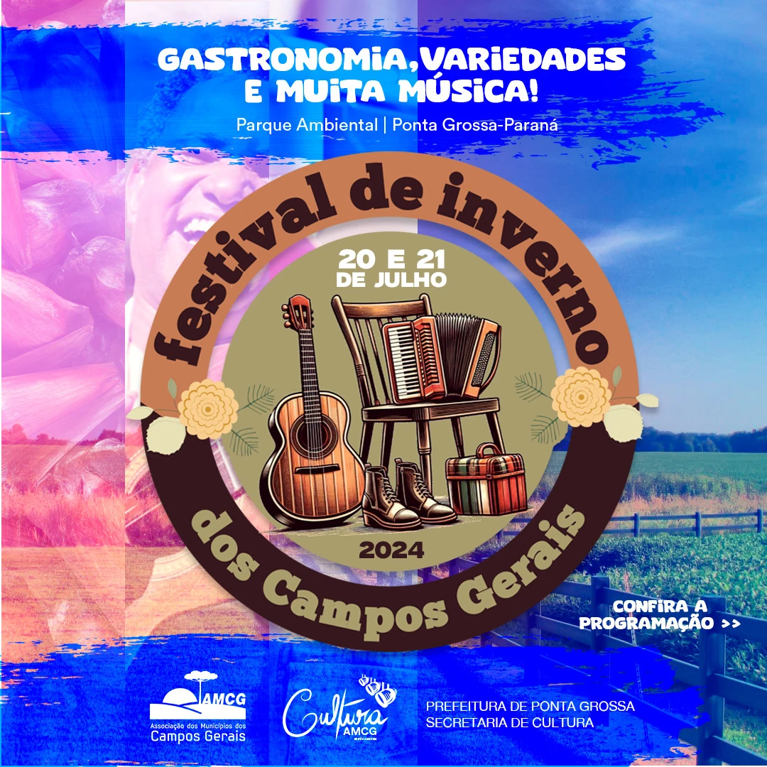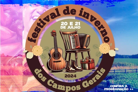 COM ASSESSORIAS - O Festival de Inverno dos Campos Gerais será realizado na próxima semana em Ponta Grossa, entre 20 e 21 de julho (sábado e domingo), no período da tarde. A programação inclui Feira Gastronômica, apresentações musicais e comércio de artesanatos. Todos os atrativos estarão disponíveis no Parque Ambiental durante os dois dias de evento, com entrada franca.