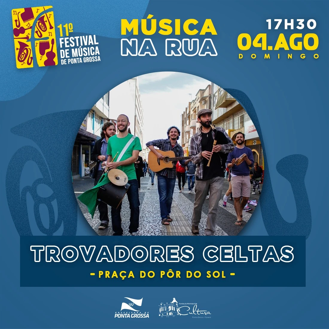Além deste, a população poderá curtir as apresentações do Circuito Música na Rua, que terá 10 atividades nos próximos dias. Nesta sexta-feira, 02 de agosto, A Banda de um Homem Só estará no Calçadão às 11h30 e na Rodoviária às 18h; no sábado, 03 de agosto, o músico estará no Terminal Central às 12h. No domingo será a vez dos Trovadores Celtas tocarem às 17h30 na Praça do Pôr do Sol (atrás do Premium Vila Velha Hotel). No dia 07 de agosto, quarta-feira, o Quinteto BrassUka irá passar pelo hall do prédio da Prefeitura, às 15h30, e no Calçadão, às 18h30. No dia seguinte, 08 de agosto, estará em Ponta Grossa o Jazz Cigano Quinteto, que se apresenta às 11h30 no Calçadão. A programação de Música na Rua encerra na sexta-feira, 09 de agosto, com Trovadores Celtas às 12h no Calçadão, às 15h30 no hall da Prefeitura e às 18h30 na Rodoviária.