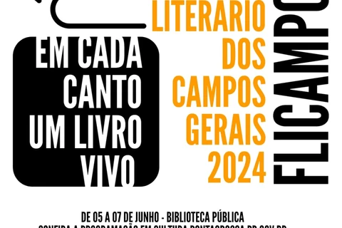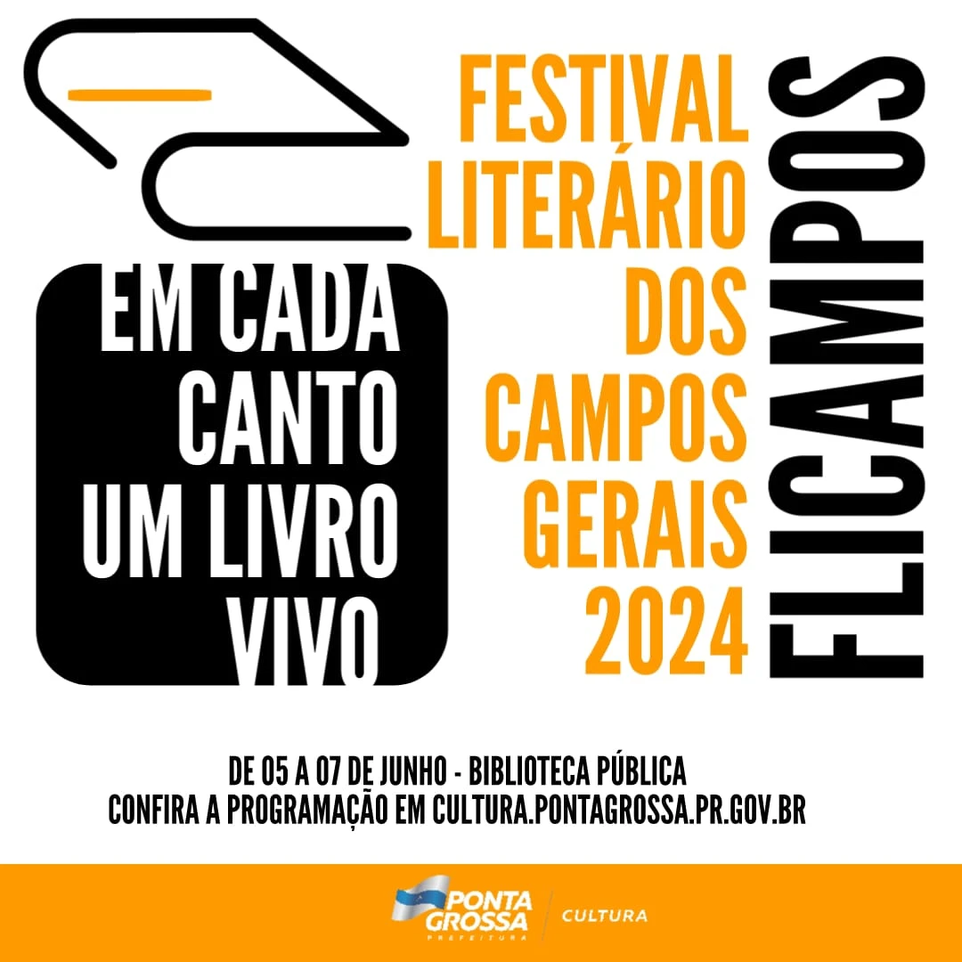 COM ASSESSORIAS - Será aberto nesta quarta-feira, dia 5, o Festival Literário dos Campos Gerais (Flicampos-2024). A cerimônia de abertura acontece a partir das 19 horas, na Biblioteca Pública Municipal. A promoção é da Prefeitura de Ponta Grossa, através da Secretaria Municipal de Cultura.